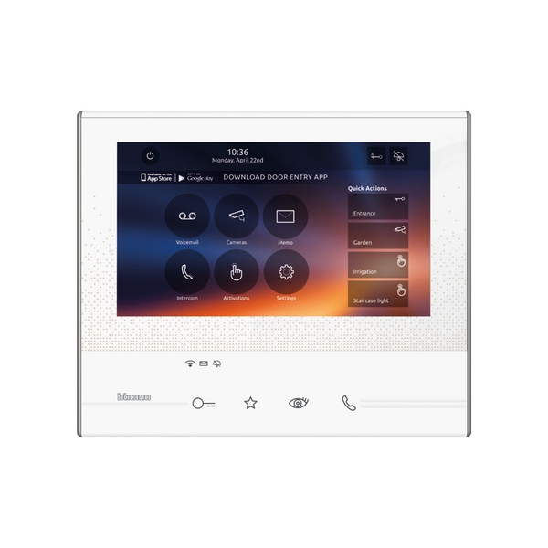 Der Hometouch ist sowohl Steuerzentrale für Ihre MyHOME-Hausautomation als auch Video-Hausstation mit integrierter Smartphone-Anbindung. Über den Hometouch steuern und verwalten Sie Ihre komplette Hausautomation, wie z. B. Licht und Rollladen betätigen, Heizung regeln, Szenarien abrufen, u.v.a.m. Mittels kostenloser App „Door Entry for Hometouch“ bekommen Sie auch die komplette Funktionalität einer Sprechanlage auf Ihr Smartphone (Videobild, Gespräch, Tür öffnen, usw.).
